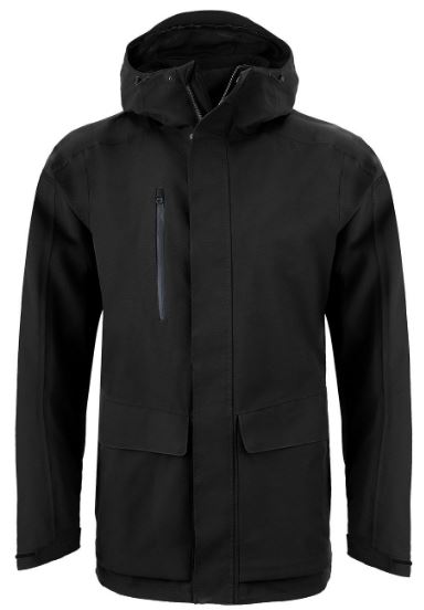 3-in-1 jacket. Waterproof and breathable shell outer with a softshell inner jacket. 10,000mm waterproof and 20,000g/ m2/ 24hrs breathable. Recycled polyester stretch mesh and recycled polyester taffeta lining outer. Recycled polyester elastane softshell with EcoShield DWR finish and striped microfleece back inner.